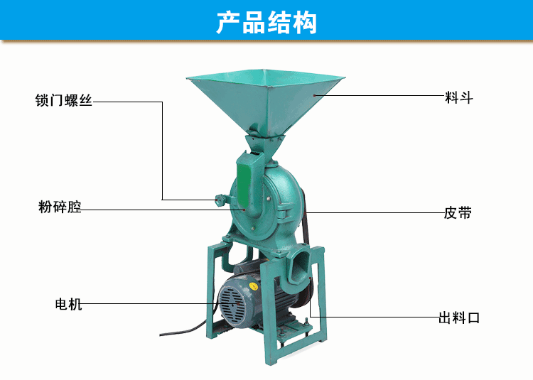 速运转的锤片碰撞以及物料间相互撞击,从而达到快速粉碎的理想效果。适合加工粉碎各种粮食、中药材、树根、
